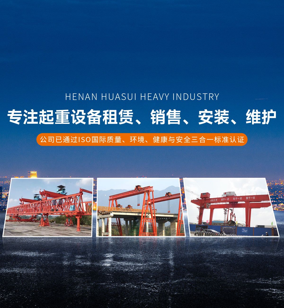河南華隧重工機械裝備有限公司主要從事通用門式起重機、橋式起重機、電動單梁起重機,輪胎式起重機、架橋機、提梁機、遠梁平車、鋼絲繩電動萌蘆、卷揚機、起重配件制造、銷售:起重機械租賃、安裝和維修,起重設備園收,機械設備維修,鋼結構工程承包,橋梁工程及技術咨淘服務,銷售五金制品、機電設備:建設工程監理,建設工程設計,各類工程建設活動,建筑勞務分包,建筑物折除作業,施工作業,工程管理服務,土石方工程施工,裝如發運?! 」疽淹ㄟ^IS0國際質量、環境、健康與安全三合一標準認證,特種設備制造許可證和特種設備安裝改造維修許可證。擁有完熟的質量管理體系。嚴格的管理制度,強大的生產能力和先進的檢測手段,在保證產品質量的同時,也具備了極強的市場競爭力。  公司堅持科技創新為理念,產品質量為核心,注重信譽,建立了減信可靠、快捷、思速。便利周到的售后服務網絡?! ∥覀儞碛械募夹g專家和技術服務隊伍為客戶提供充善的售前技術支持和全天候的售后服務體系,讓您無后顧之憂,享受一站式的超值服務?!  叭A隧重工,伴您成功“是華隧重工永遠的宗指,真被的希望與各界朋友攜手并進。共創輝準!
